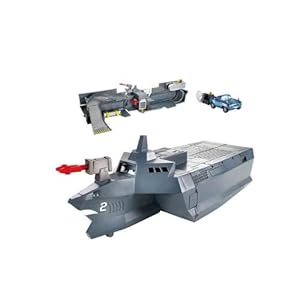 Le Playset porte-avion de MATTEL permet de revivre les grandes scènes d'espionnage du film Cars 2. Ce jouet est 2 en 1 : il propose un côté porte-avion et s'ouvre aussi pour révéler 3 zones de jeu. Ce set comprend plusieurs accessoires : tapis roulant, ascenseur, propulseur, pièges etc. 1 véhicule agent secret est inclus.